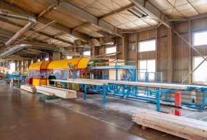 ランバー宮崎協同組合では、建築用の木材を高精度に加工できる「フンデガー」という大型のプレカット加工機を導入しています。