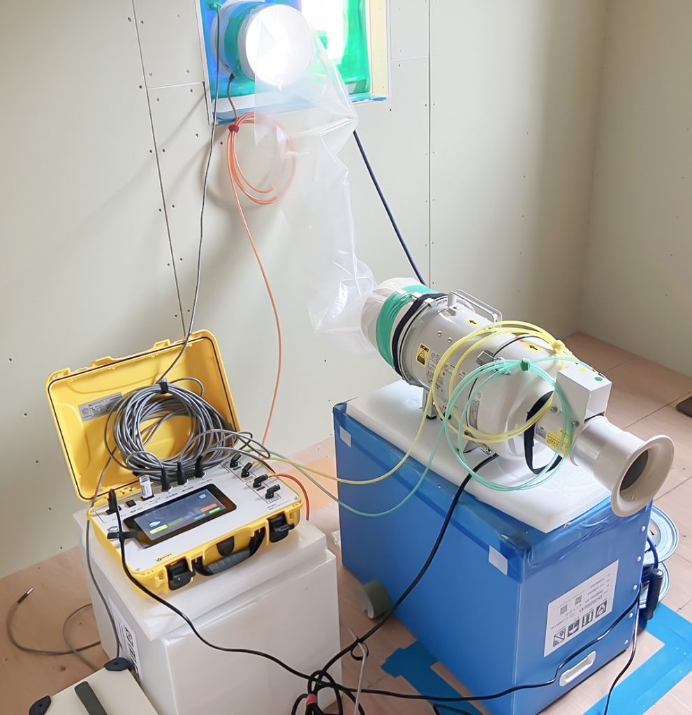すべての工事終了後に行い、家全体の気密性能を最終チェックします。